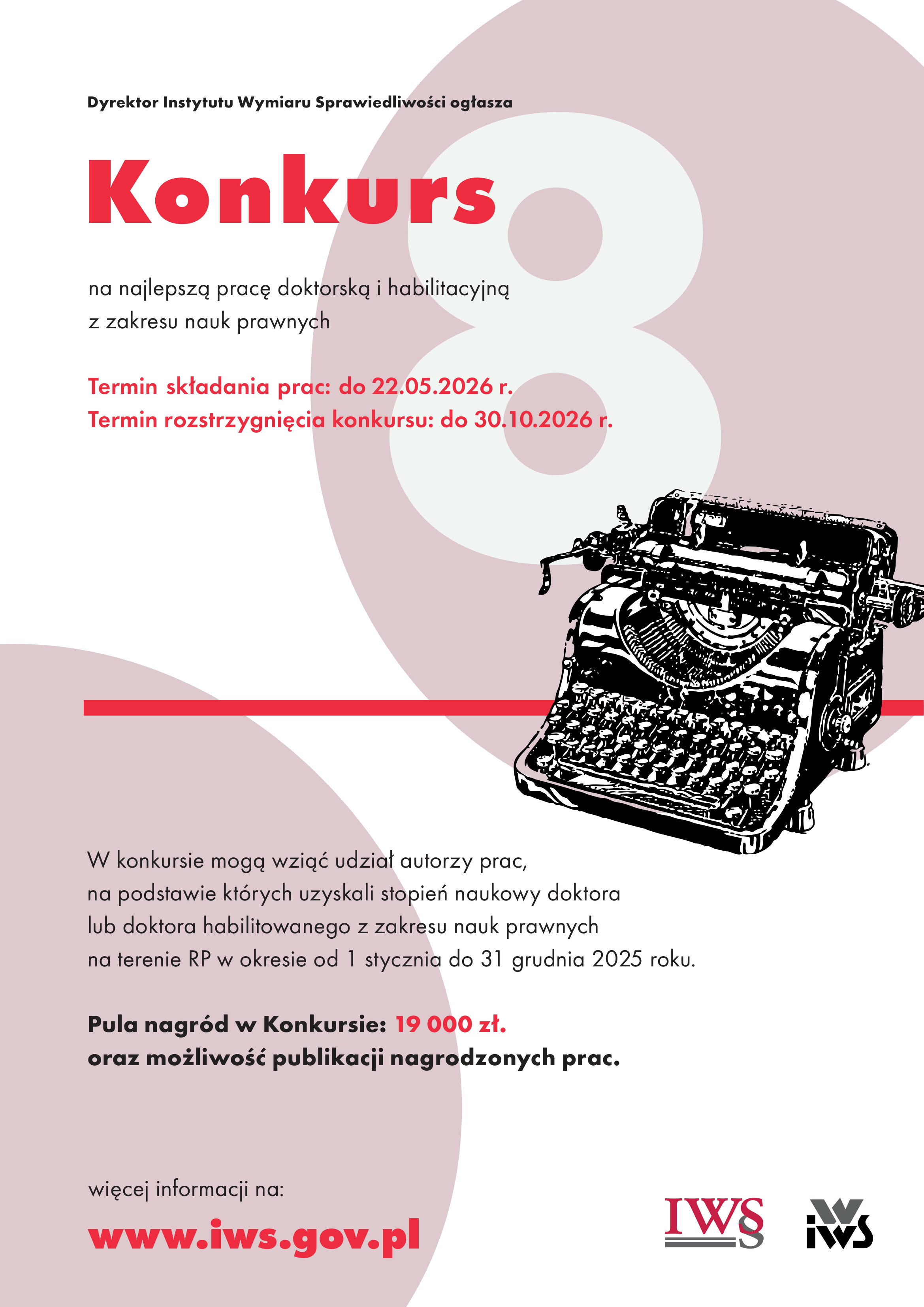 W imieniu Dyrektora Instytutu Wymiaru Sprawiedliwości zapraszamy do udziału w kolejnej edycji konkursu na najlepszą pracę doktorską i habilitacyjną z zakresu nauk prawnych.